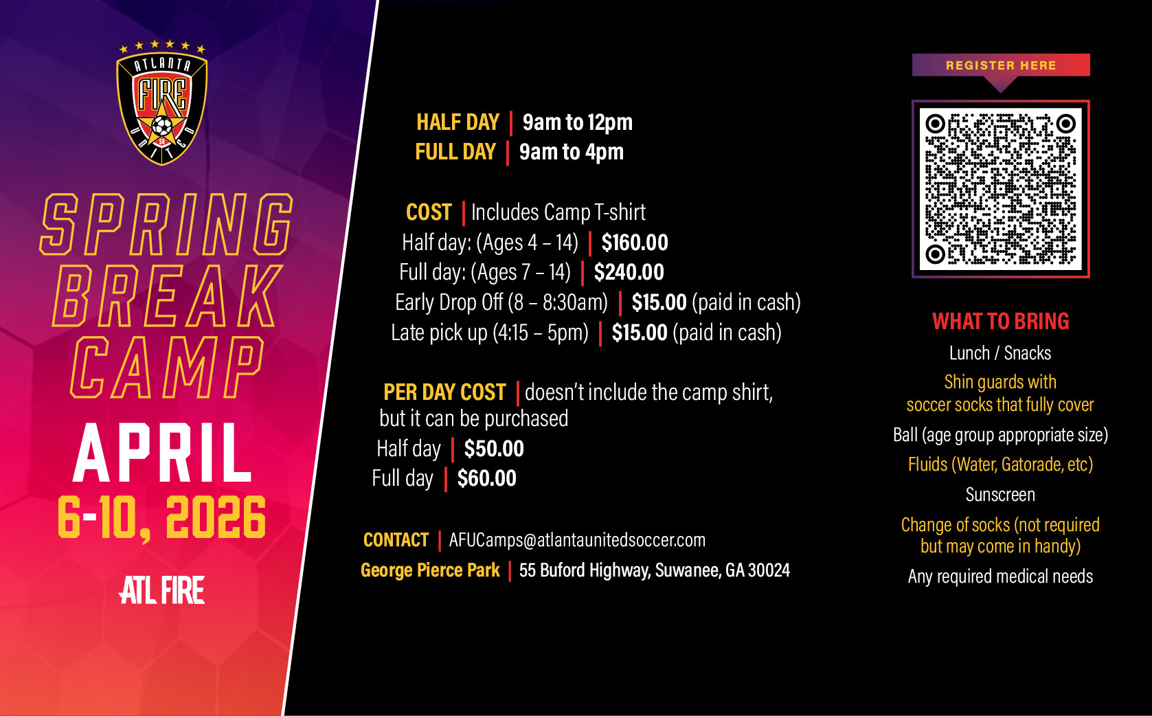 - Half day: (Ages 5 – 14): $160.00
